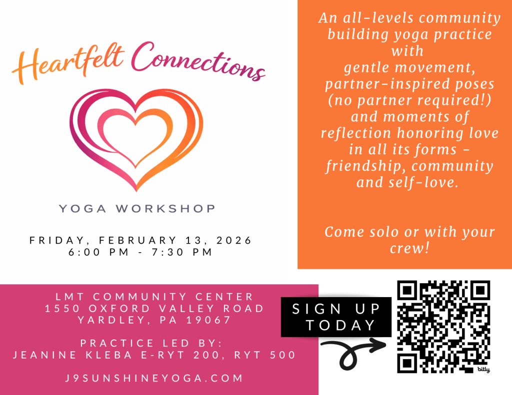 Join us for an all-levels, playful, heart-centered yoga class designed to open the heart, connect to the breath and spark joy and gratitude for the people who light up our lives. Through gentle movement, partner-inspired practices (no partner required!) and moments of reflection we’ll honor love in all its forms – friendship, community and self-love. Come solo or with your crew!